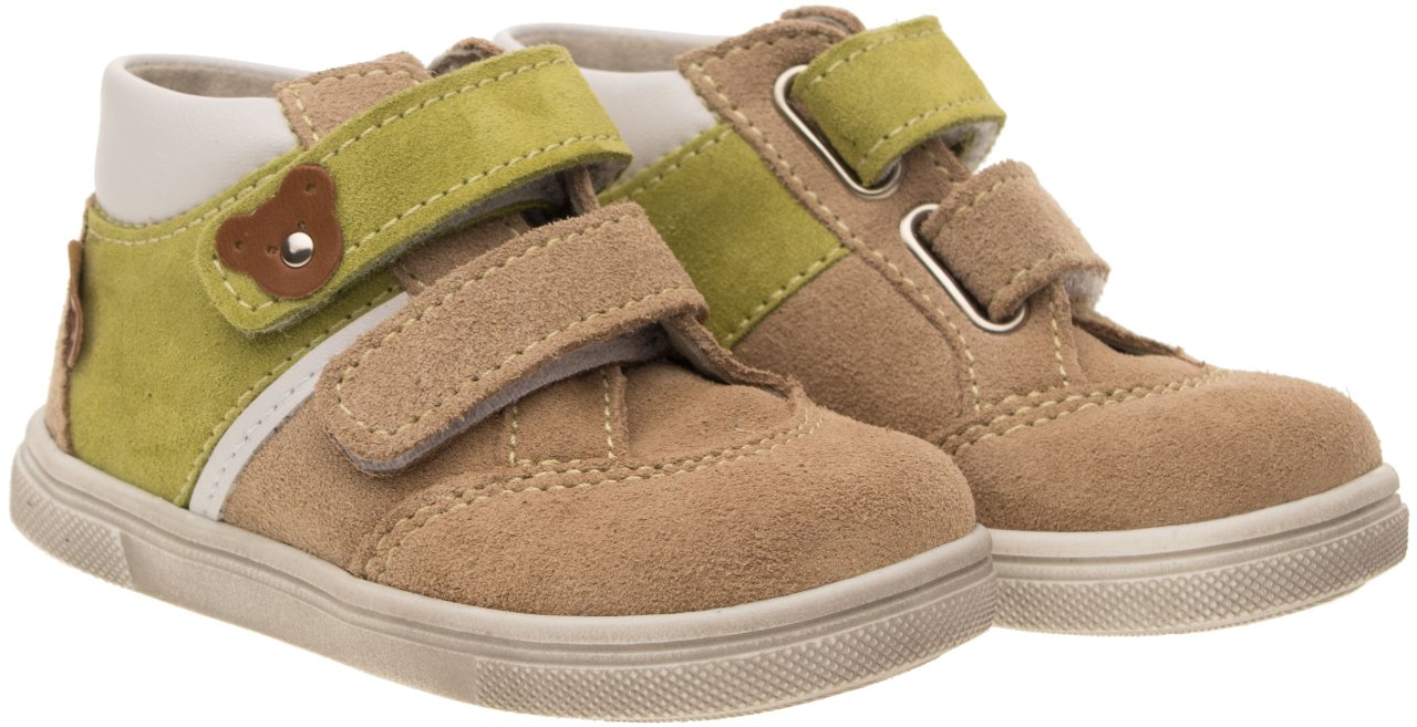 Střih je vhodný pro děti s nízkým a středně vysokým nártem. Zapínání na pásky se suchým zipem umožňuje rychlé obutí a snadné přizpůsobení obuvi dětské noze.