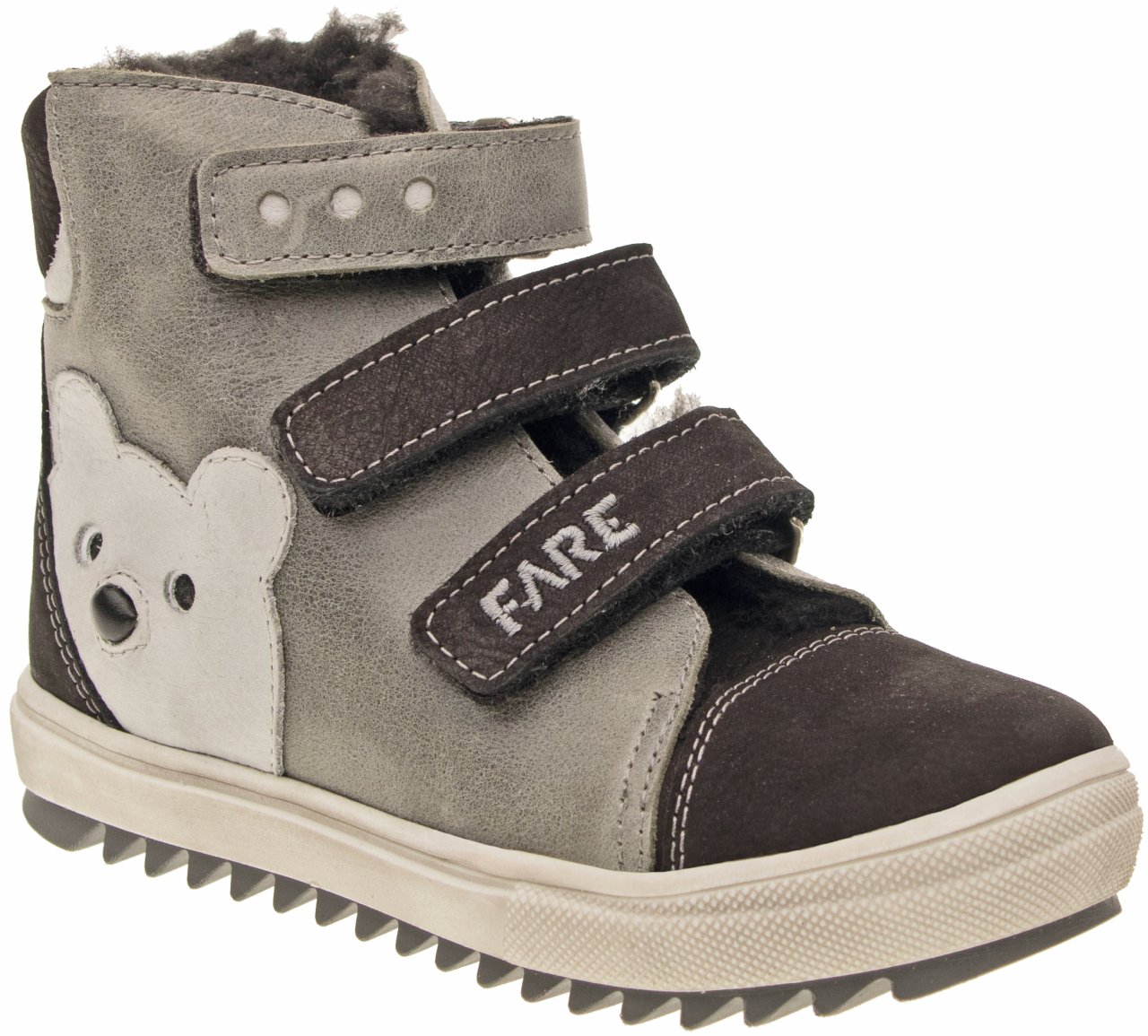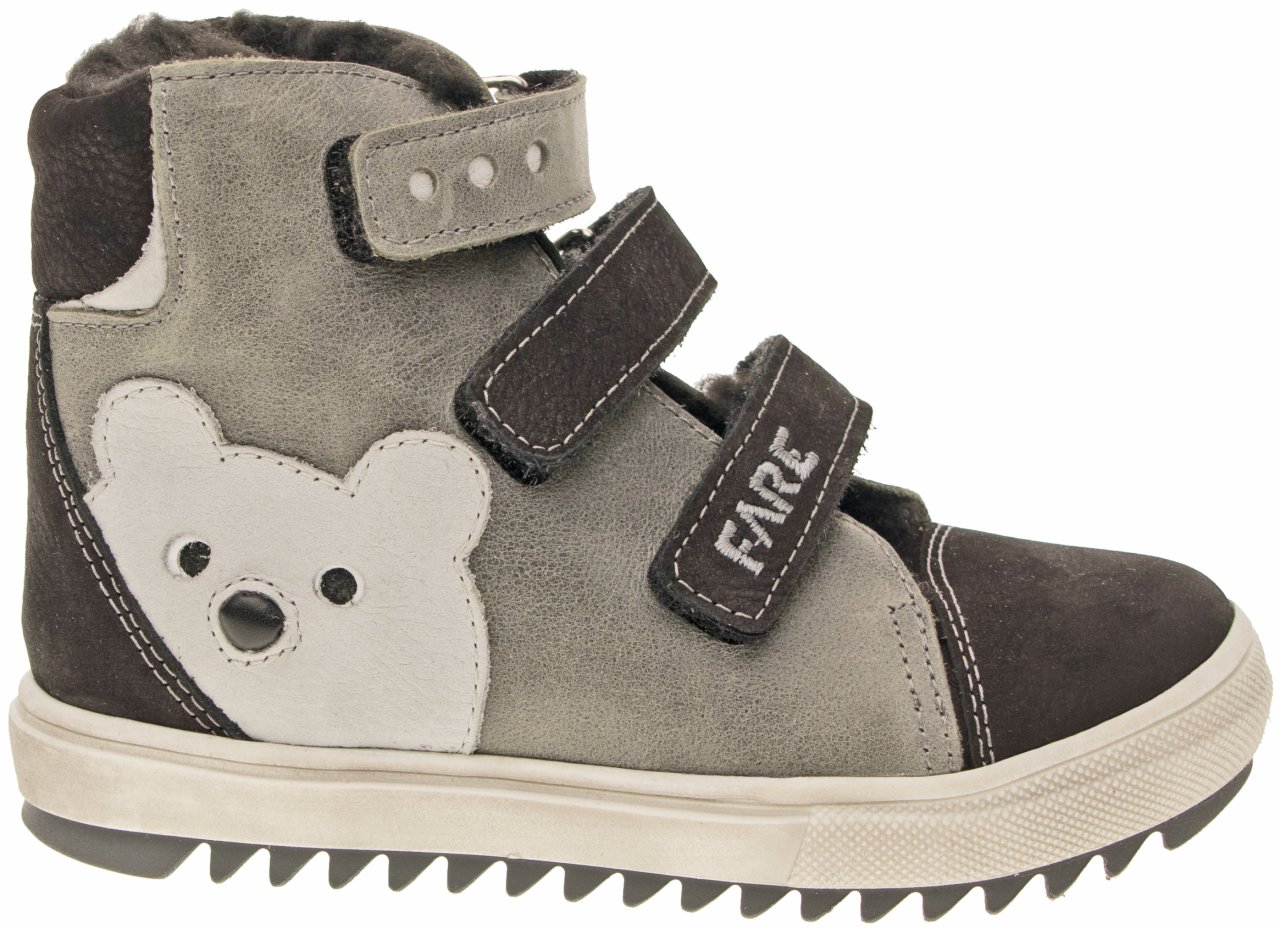 Kvalitní kotníčková kožená obuv, která okouzlí nejen svým stylovým vzhledem, ale i kvalitním zpracováním a promyšleným střihem. Boty jsou doplněny aplikací medvěda, což přidává špetku hravosti. Díky snadnému zapínání na suchý zip zvládnou děti boty pohodlně obout samy. Zimní podšívka s hřejivým středně dlouhým vlasem zajistí, že dětská chodidla zůstanou v teple a pohodlí i během chladných dní.