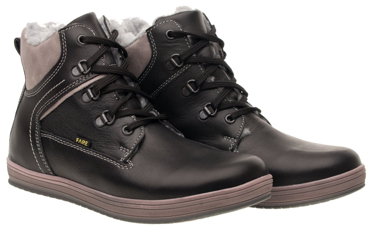 Pevná, kotníčková obuv, šněrovací. Vrchový materiál: hovězí useň lícová hladká. Podšívka je zimní s hřejivým, středně dlouhým vlasem. Podešev je z termoplastického kaučuku, jehož složení splňuje parametry pro používání v zimním období. Předností je vyjímatelná vkládací stélka a pevný opatek i špice.