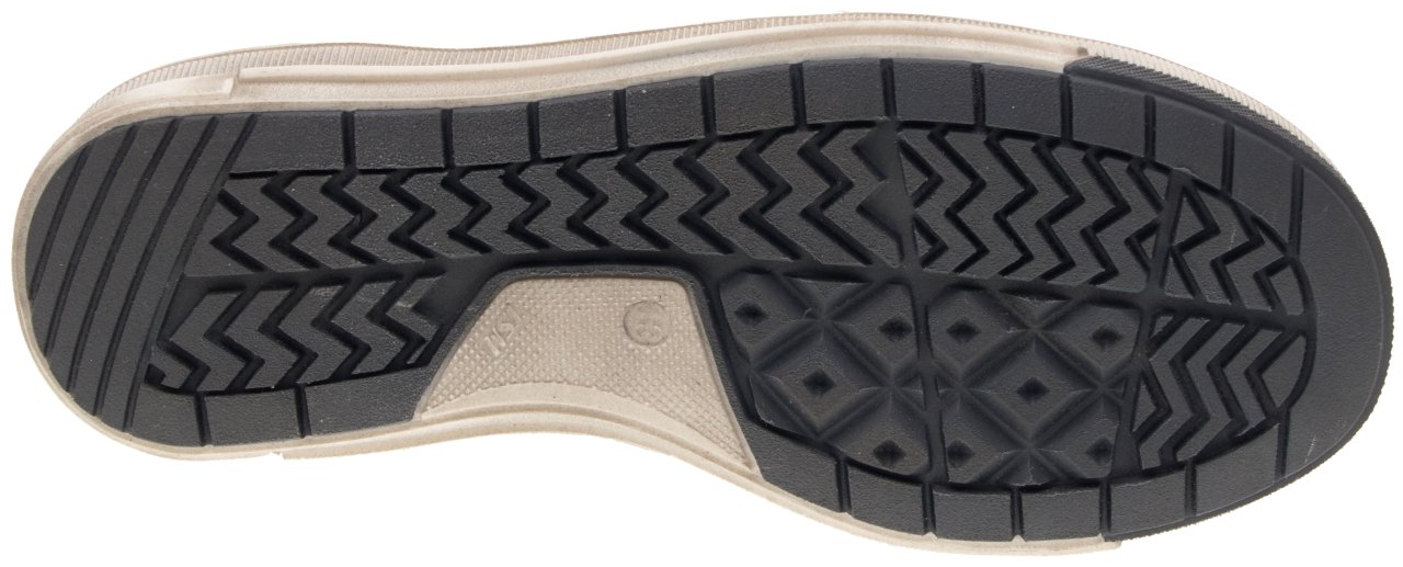 Svršek tvoří kombinace pravé hovězinové kůže typu nubuk a textilu, která zajišťuje odolnost i lepší prodyšnost při nošení. Membrána pomáhá chránit nohy před vlhkostí a nepříznivým počasím. Rovná podešev bez podpatku podporuje přirozené postavení chodidla a přispívá k pohodlné chůzi.