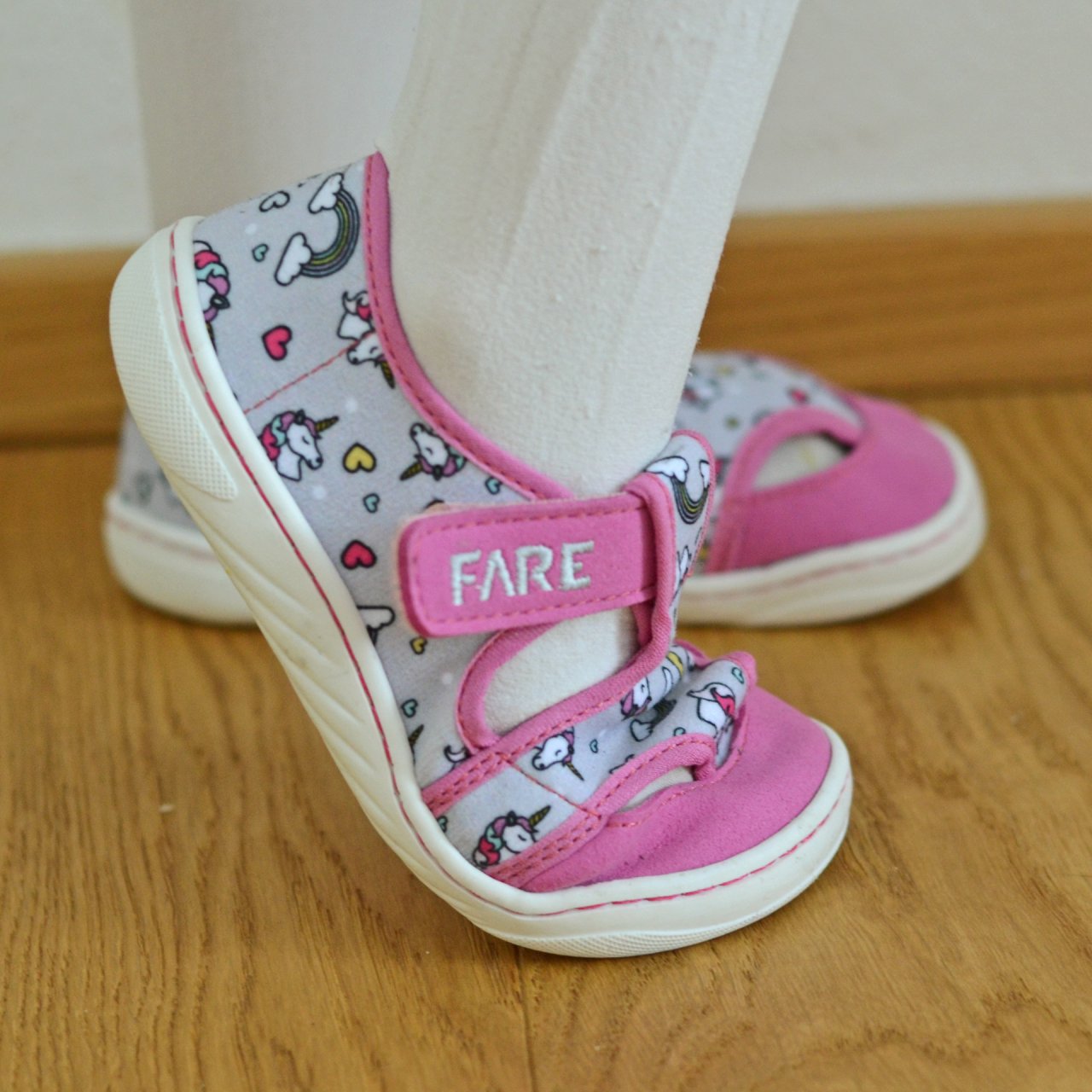 Flexibilní podešev FARESOLE DIXIE se přizpůsobuje přirozenému pohybu nohy a poskytuje potřebnou míru ochrany při běžném používání v interiéru. Zapínání na suchý zip umožňuje snadné obouvání i zouvání a podporuje samostatnost dítěte.