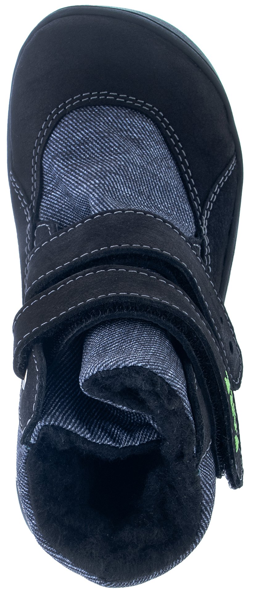 Zimní štróblovaná obuv s membránou a se zapínáním na suchý zip. Našívací (štróblovaná) stélka umožňuje lepší ohyb boty. Vrchový materiál: hovězinová useň hladká v kombinaci s textilem.
