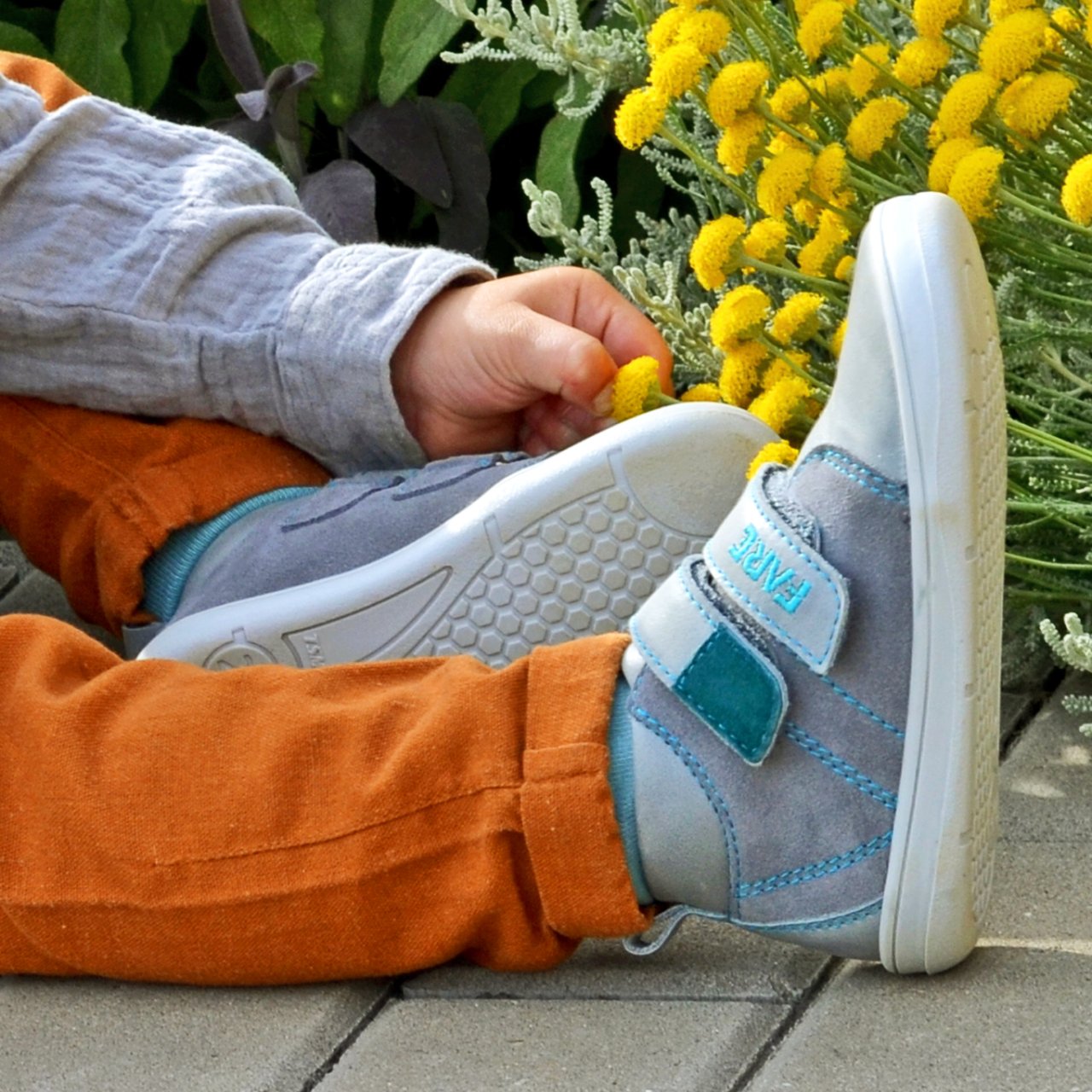 Flexibilní barefoot podešev FARESOLE VELA se přizpůsobuje práci nohy při chůzi a poskytuje potřebnou míru ochrany při běžném pohybu na městských površích. Zapínání na suchý zip usnadňuje obouvání a podporuje samostatnost dítěte při každodenním nošení.