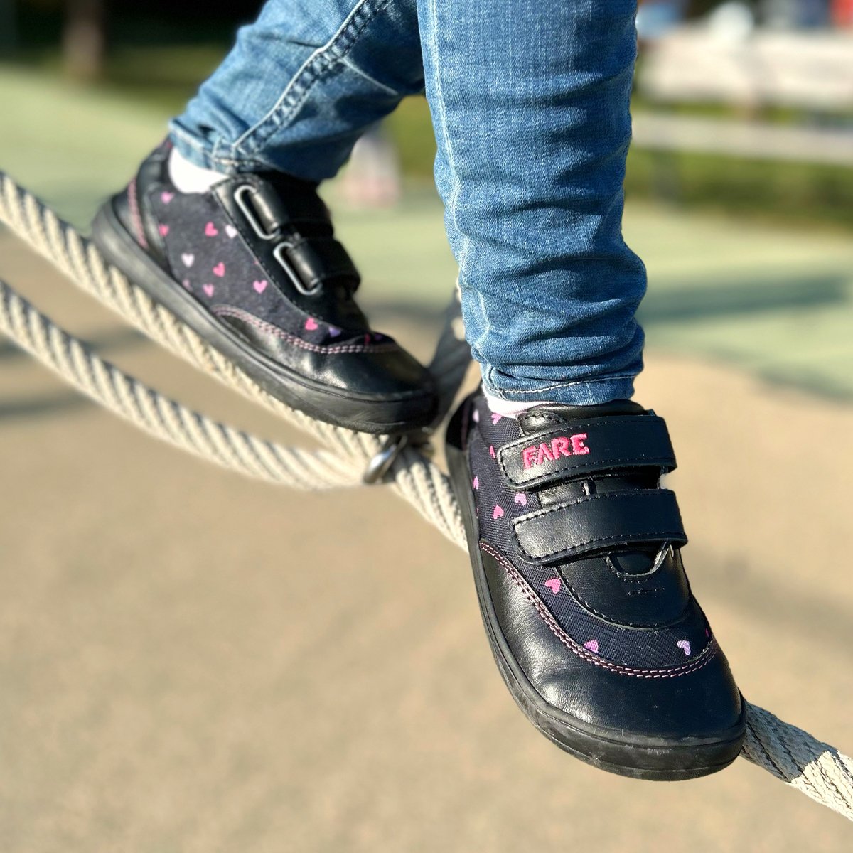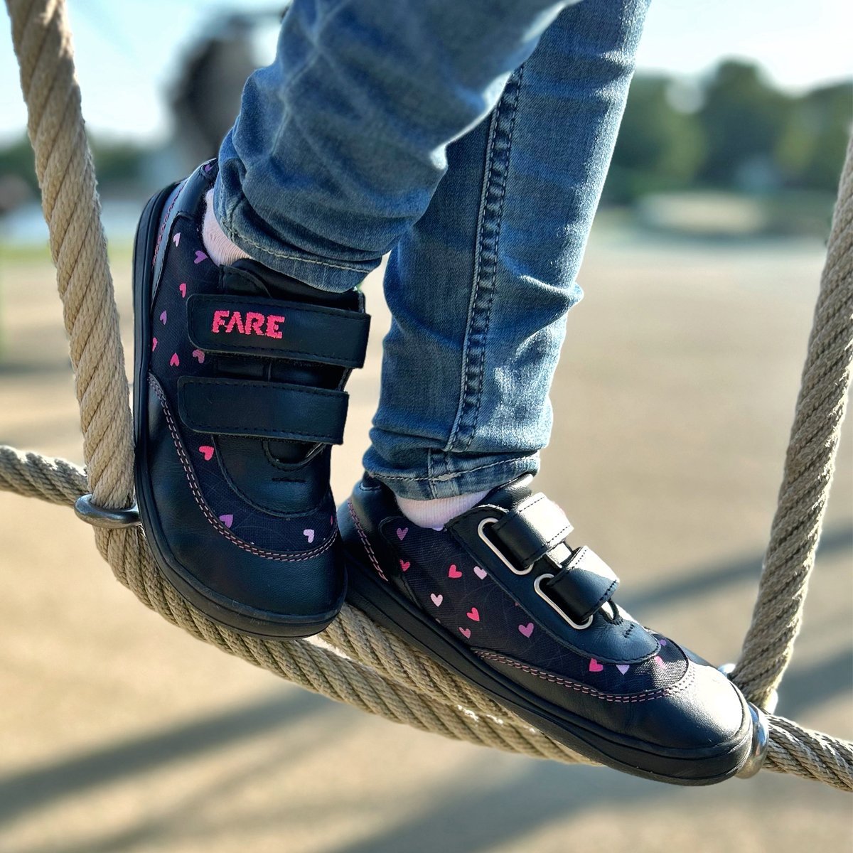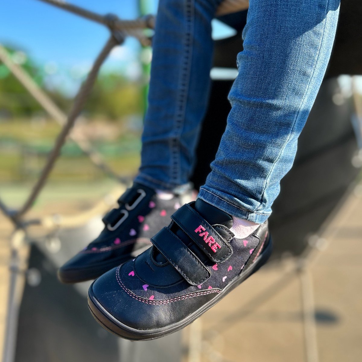 Flexibilní barefoot podešev FARESOLE VELA umožňuje přirozený pohyb chodidla při chůzi a podporuje jeho aktivní práci. Zapínání na suchý zip s gumičkou usnadňuje obouvání i zouvání a pomáhá přizpůsobit obuv tvaru nohy. Přirozený tvar obuvi je vhodný i pro děti, které preferují volnější, barefootově laděné obouvání.