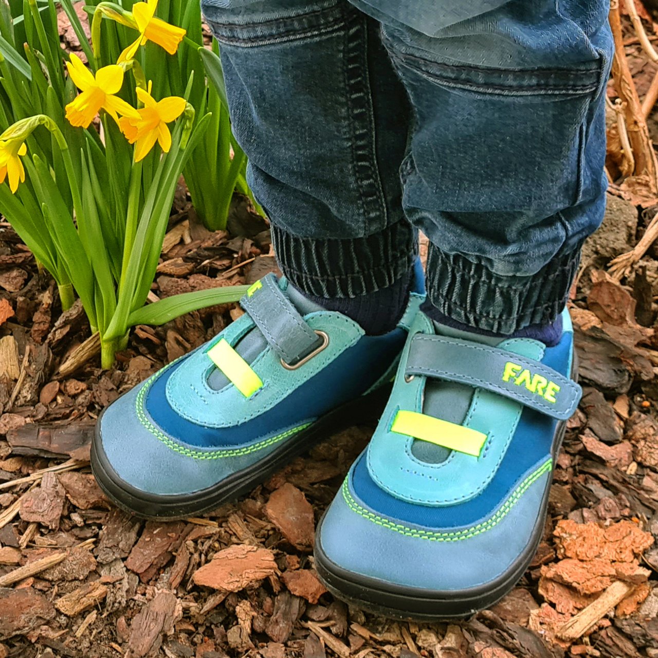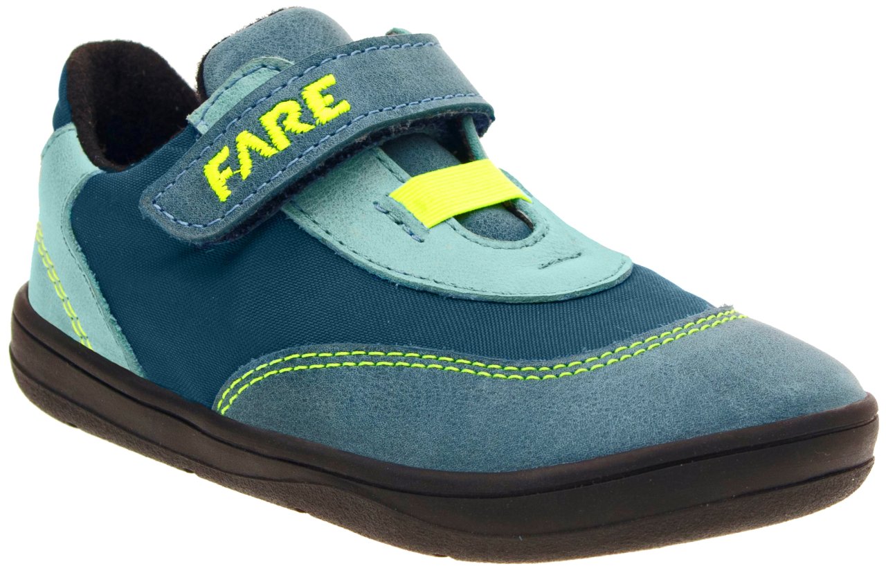 Flexibilní barefoot podešev FARESOLE VELA umožňuje přirozený pohyb chodidla při chůzi a podporuje jeho aktivní práci. Zapínání na suchý zip s gumičkou usnadňuje obouvání i zouvání a pomáhá přizpůsobit obuv tvaru nohy. Přirozený tvar obuvi je vhodný i pro děti, které preferují volnější, barefootově laděné obouvání.