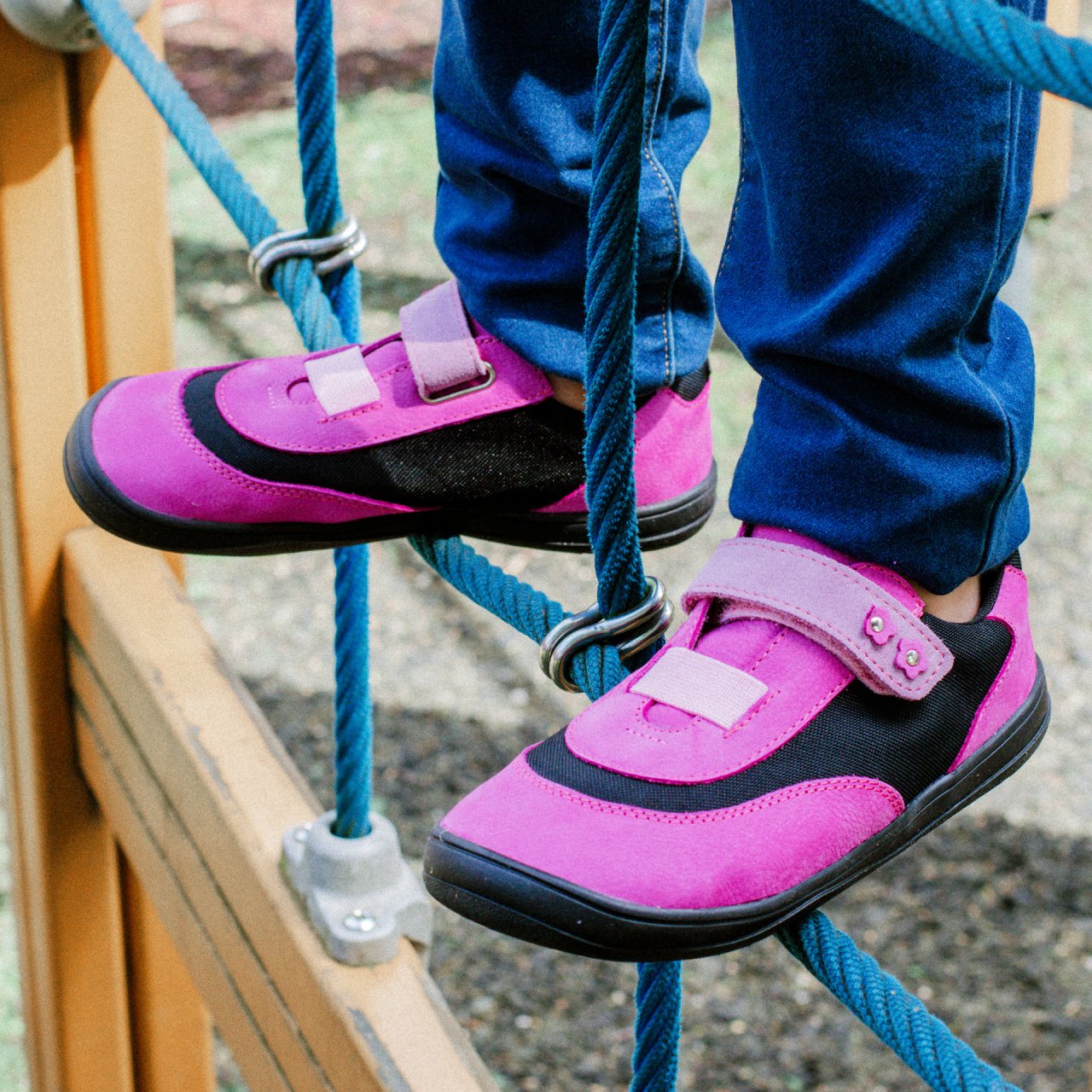 Flexibilní barefoot podešev FARESOLE VELA umožňuje přirozený pohyb chodidla při chůzi a podporuje jeho aktivní práci. Zapínání na suchý zip s gumičkou usnadňuje obouvání i zouvání a pomáhá přizpůsobit obuv tvaru nohy. Přirozený tvar obuvi je vhodný i pro děti, které preferují volnější, barefootově laděné obouvání.