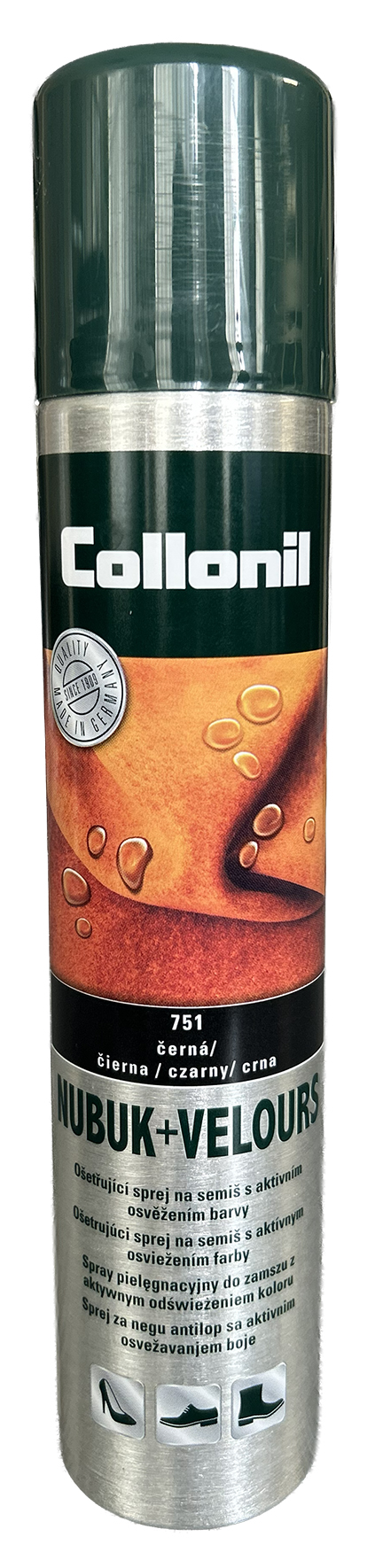 Impregnační a ošetřující sprej ČERNÝ na broušené usně (nubuk, velur i semiš) a textil. V jednom kroku vyživuje, osvěžuje barvy a poskytuje dlouhodobou ochranu proti vlhkosti a nečistotám. Díky svému složení zachovává sametově hebkou vlasovou strukturu broušených usní. Ošetřovaný materiál díky tomuto spreji zůstane měkký, pružný a prodyšný. A v neposlední řadě při pravidelném používání spreje lze zabránit tvorbě bílých skvrn od sněhu a vody v chladném počasí.